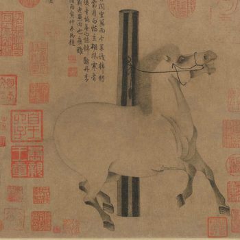 Han Gan a souligné la force et la noblesse des chevaux de l’Empire Tang en utilisant une ligne tendue contrôlée et des compositions d’une grande clarté. Le cheval comme sujet de peinture a étécontinué par Li Gonglin dans la dynastie des Song (960-1279) et par Zhao Mengfu dans la dynastie des Yuan (1271-1368), entre autres.