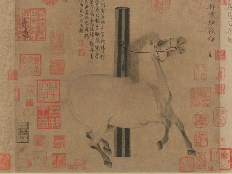 Han Gan a souligné la force et la noblesse des chevaux de l’Empire Tang en utilisant une ligne tendue contrôlée et des compositions d’une grande clarté. Le cheval comme sujet de peinture a étécontinué par Li Gonglin dans la dynastie des Song (960-1279) et par Zhao Mengfu dans la dynastie des Yuan (1271-1368), entre autres.