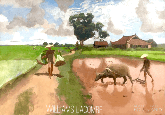 Autour de Hanoï, il peint le travail dans les rizières et la grâce des femmes dans leur ao-dai, robe traditionnelle vietnamienne.