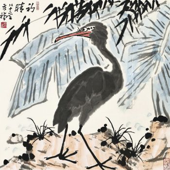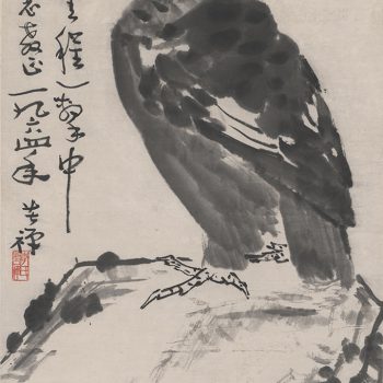 Li Kuchan fut professeur d’art à Pékin à partir de 1926, notamment à l’Académie centrale des Beaux-Arts de 1950 jusqu’à sa mort en 1983. Il se spécialisa dans la peinture d’oiseaux et de fleurs dans le xieyi libre et spontané qui capte l’esprit des sujets à travers un pinceau calligraphique expressif et des formes simplifiées. Il était connu pour sa représentation des oiseaux de proie tout au long de sa carrière, mais les œuvres de ses dernières années sont particulièrement libres et audacieuses.