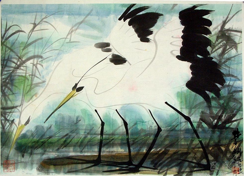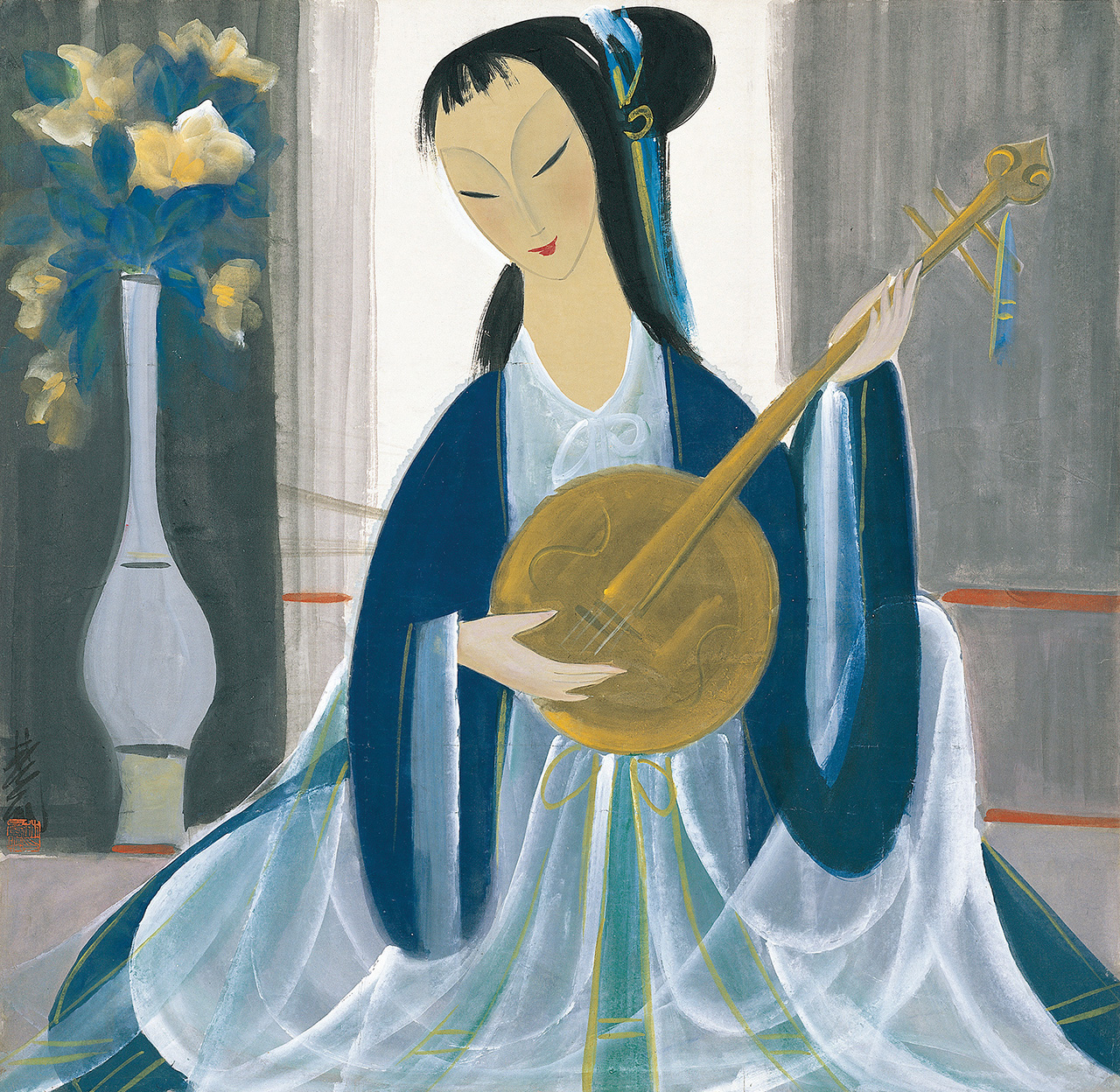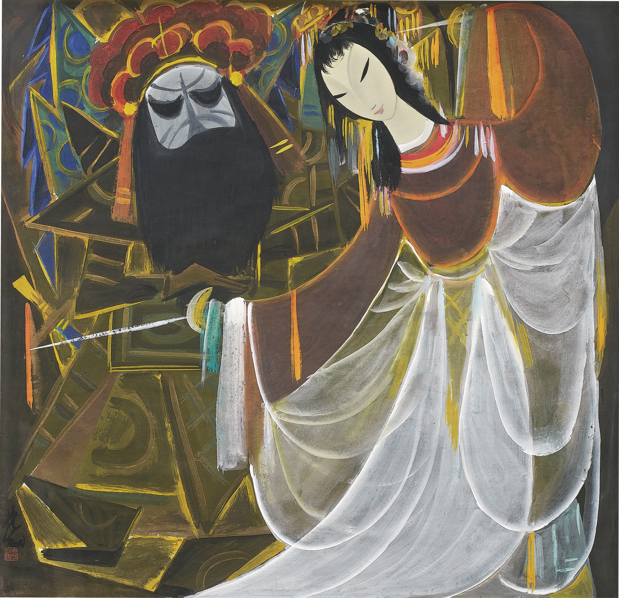 Lin Fengmian emploie le clair-obscur de l’huile sur toile sur les papiers de riz.