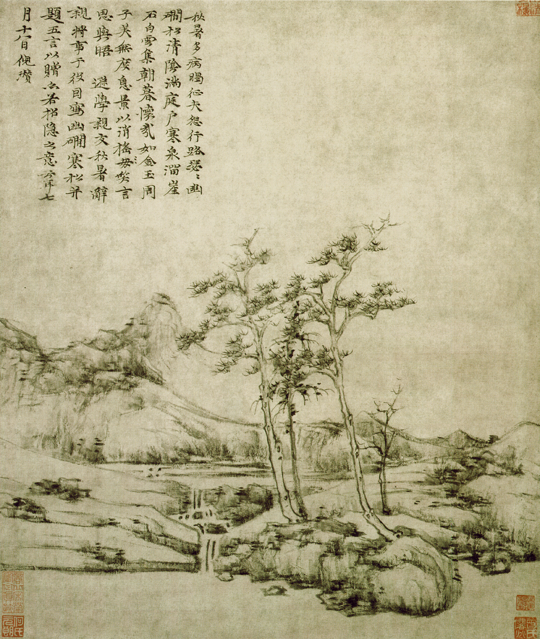 Ni Zan est un peintre et un poète de la dynastie Yuan. Il était originaire de Wuxi dans la région de Lake Tai. Au lieu de servir la dynastie mongole étrangère du Yuan, Ni Zan a choisi de vivre une vie de retraite et de cultiver les arts (poésie, peinture et calligraphie).