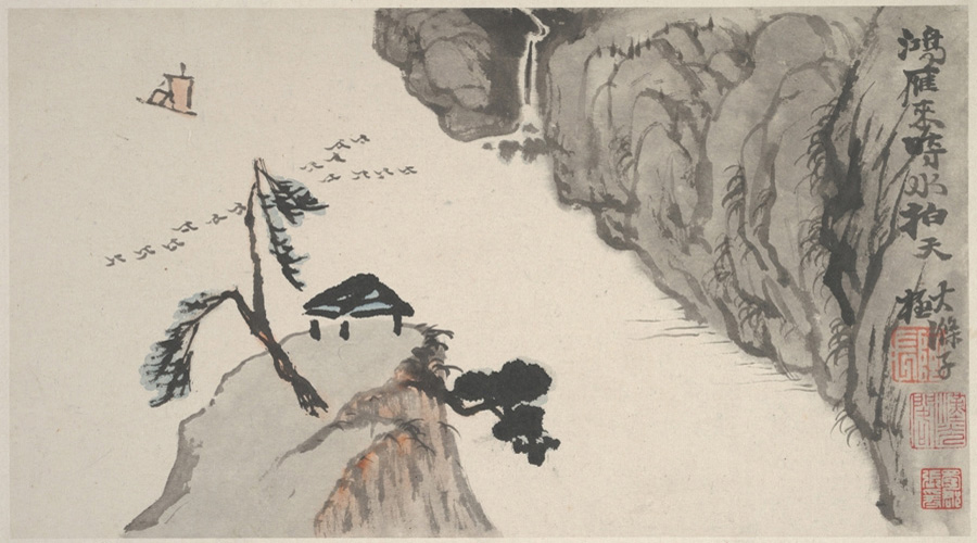 Shitao était un membre de la maison royale Ming. Il évita de justesse la catastrophe en 1644 lorsque la dynastie des Ming tomba aux mains des envahisseurs mandchous. S’étant échappé par hasarddu destin auquel son lignage l’aurait affecté, Shitao devint un moine bouddhiste à un âge précoce.