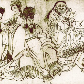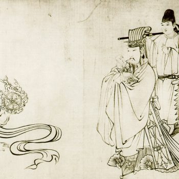 Wu Daozi originaire de Yangdi, province du Henan, était un peintre de la dynastie Tang chinoise (618-907) qui fut tellement encensé par les critiques plus tard que ses contributions sont presque enterré dans le mythe. Wu Daozi est considéré comme ayant peint une grande variété de sujets, peignant peut-être plus que toute autre chose de grandes compositions murales de personnages essentiellement bouddhistes.Wu daozi est surtout connu pour son imagination et la vigueur expressive de son pinceau – qui est même cité par les critiques Tang qui lui ont prodigué une note «divine» (shen). Son pinceau créait probablement des lignes expressives vives de tensions alternativement épaisses et minces – vus alors et rappelés encore en contraste distinct avec les délimitations plus précieusement colorées et uniformément contrôlées du style courtois contemporain.