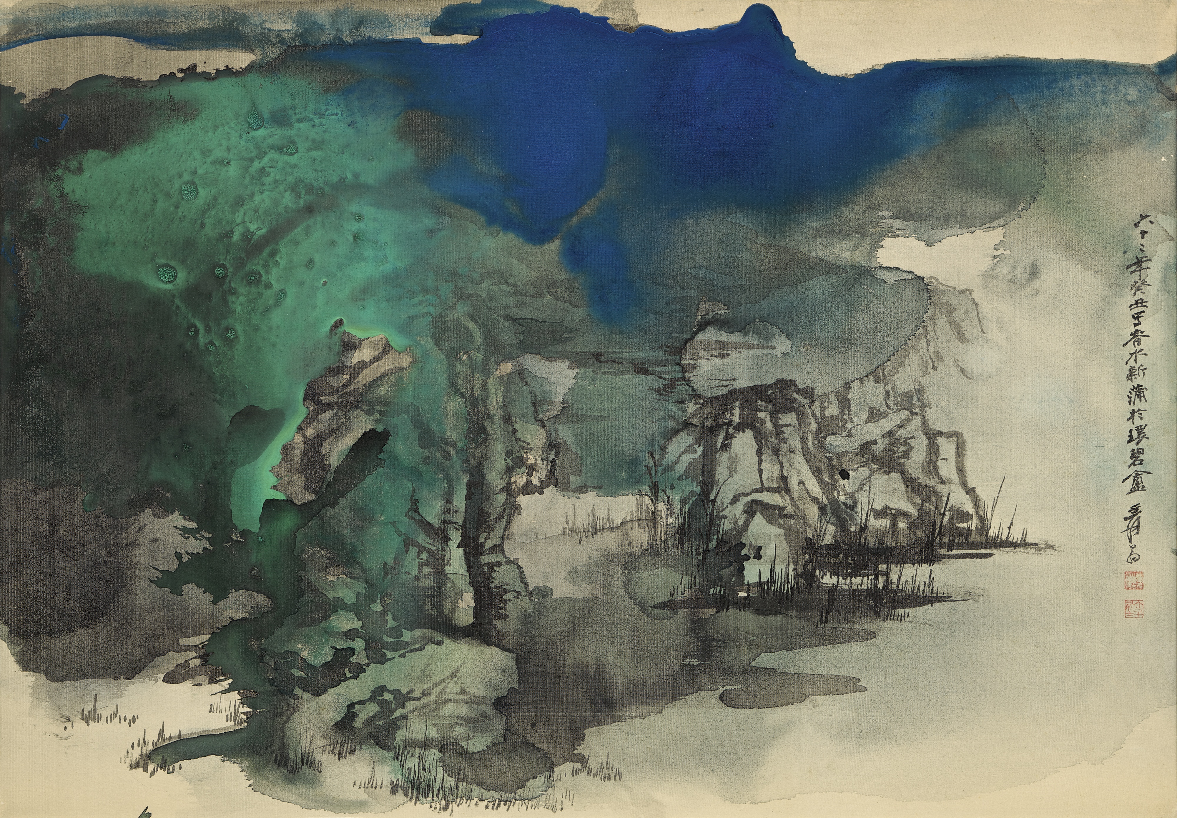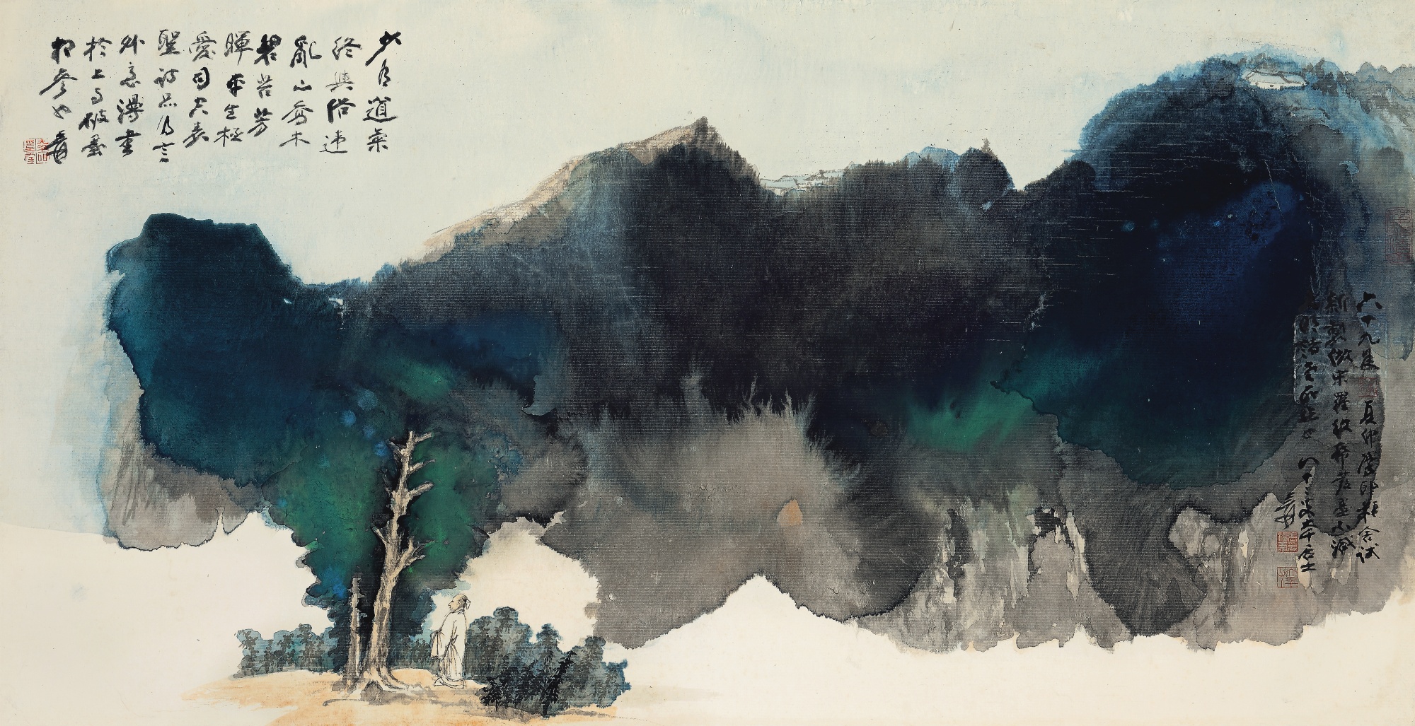 Zhang Daqian a également élaboré son propre style, en faisant naître des décors poétiques au moyen de « tâches » d’encre et de couleurs.