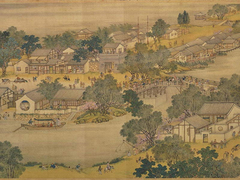 Zhang Zeduan était un célèbre peintre chinois de la dynastie desSong, il a joué un rôle dans l’histoire des débuts de l’art paysager chinois. La peinture la plus célèbre de Zhang Zeduan est Along the River Pendant le Festival de Qingming, une longue passe qui capture lavie quotidienne des gens de la période Song à la capitale, Bianjing , aujourd’hui Kaifeng au Henan.La peinture révèle le mode de vie de tous les niveaux de la société, des riches aux pauvres,ainsi que les différentes activités économiques dans les zones rurales et la ville.
