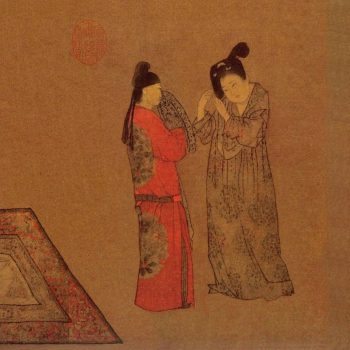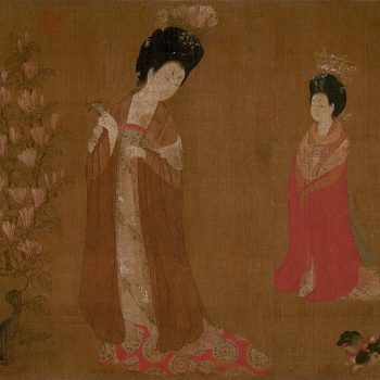 Zhou Fang a vécu dans la capitale Tang de Chang’an, qui est Xi’an moderne, au cours du 8ème siècle. Il venait d’un milieu noble et cela se reflétait dans ses œuvres, qui comprenaient des coiffures à fleurs soignées.