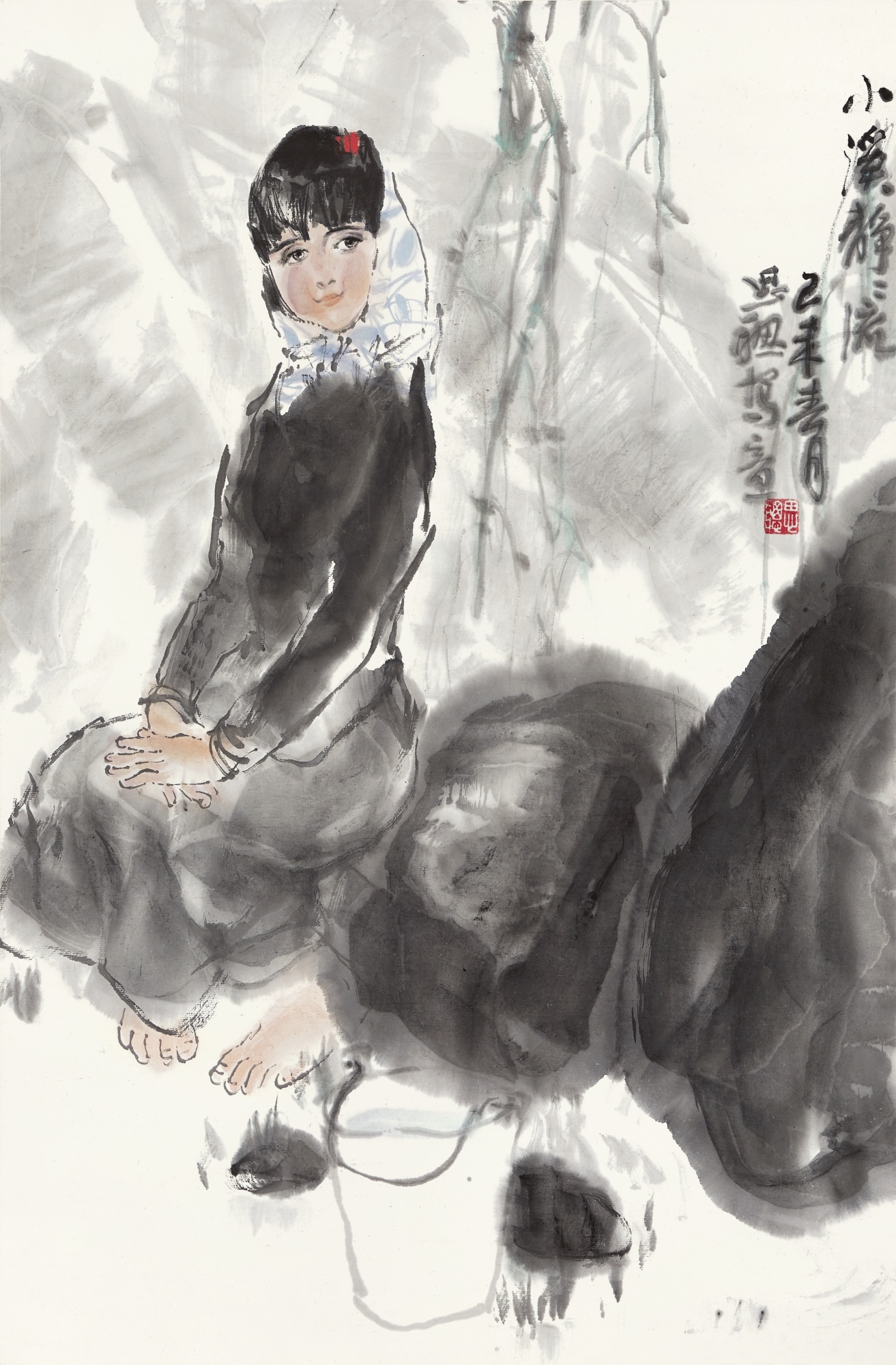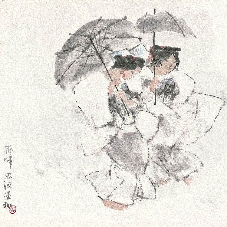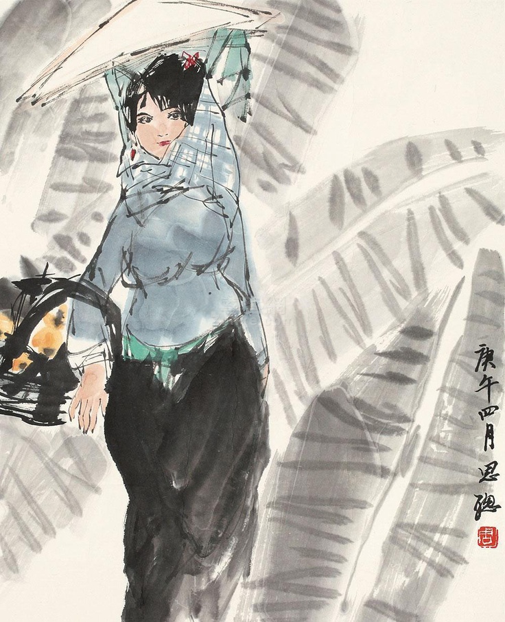 Dans sa célèbre peinture à l’encre “Femmes Yi», qui a été peinte dans les années 1980, l’artiste dépeint deux femmes de la ethnie Yi prenant soin de porter de lourdes grappes de bois de chauffage sur le dos : un thème récurrent dans son travail.